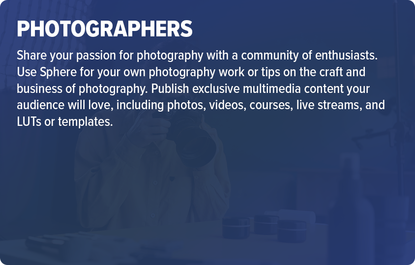 Whether you’ve never made a dollar online before or you already have an established creator business with multiple streams of income, Sphere is the best place to grow a community and deliver a premium personal experience for your audience.