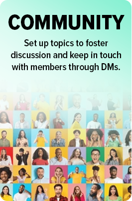 Serve your audience with text, images, videos, files, live streams, courses, and discussion topics. Everything you publish will be visible to members in your main feed – and they can post too!